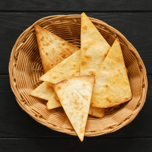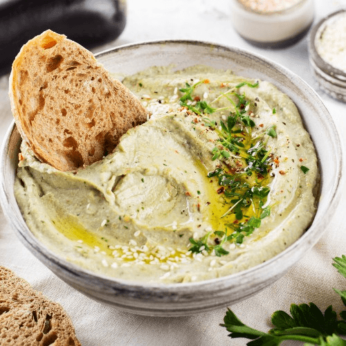With freshly made pitas chips or pitas bread on the side